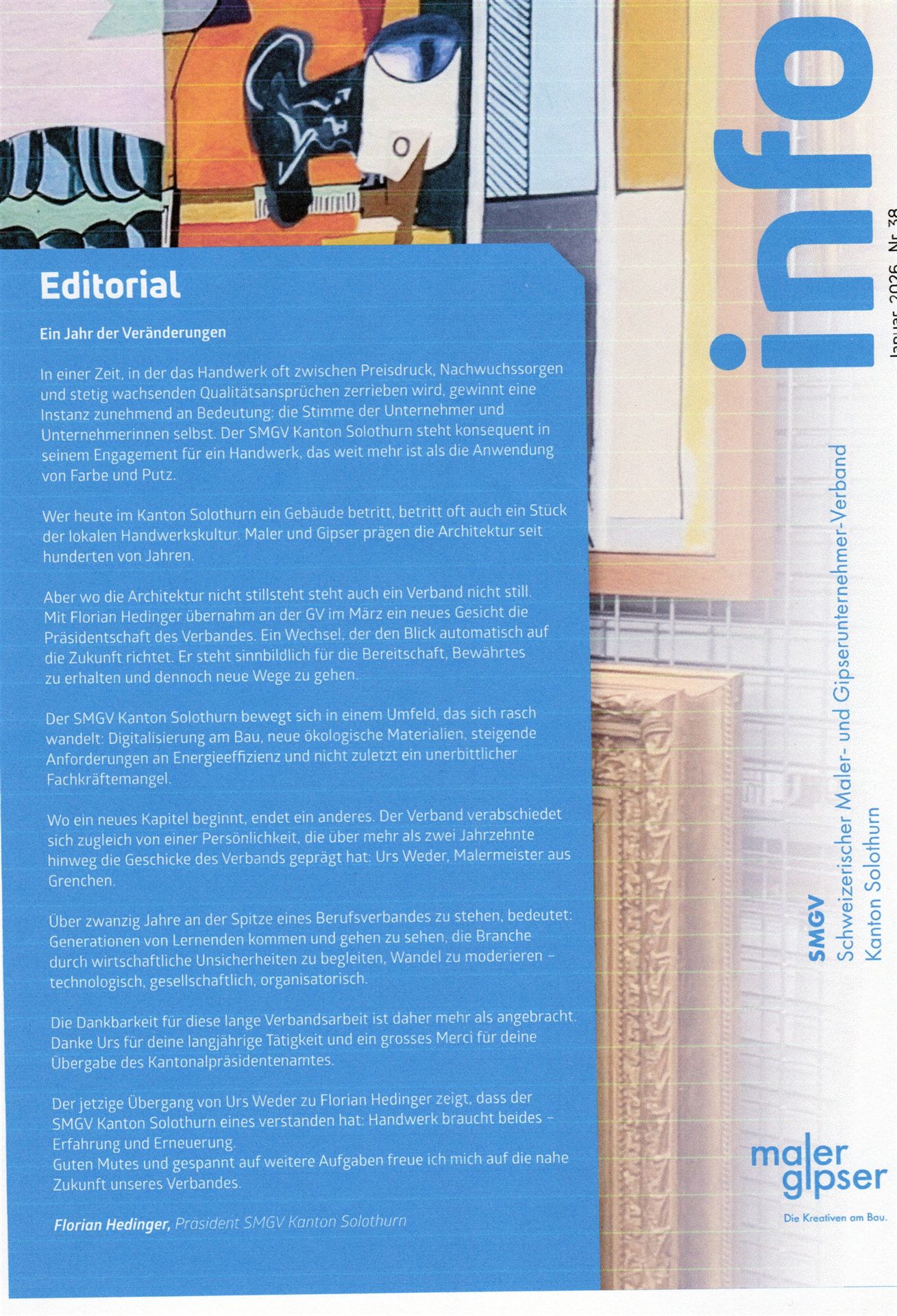 Im Traktandum "Wahlen" wird Florian Hedinger, Gipsermeister als Nachfolger von Urs Weder als Präsident des SMGV Kanton Solothurn vom Vorstand vorgeschlagen und einstimmig gewählt. Wir gratulieren unserem neuen Präsidenten zur Wahl und hoffen, auf eine gute Zusammenarbeit im Vorstand und im Verband.
